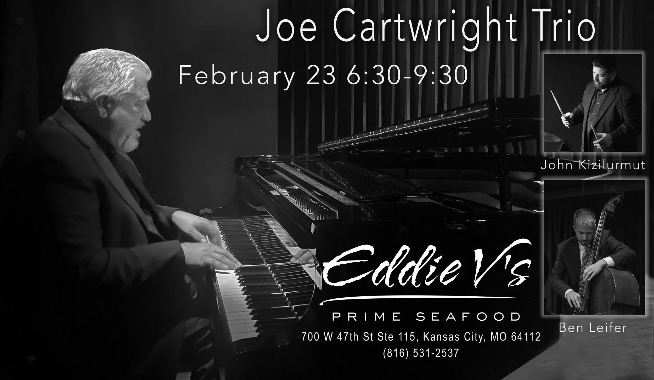 Joe Cartwright is a distinguished pianist from Mission, Kansas, and a cornerstone of the local jazz scene. His expertise and passion shine through in every performance. Joe brings a unique blend of talent and charisma to the stage. Through his record label, Lafayette Music, he brings Kansas City Jazz to a global audience.